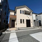 外観は、やわらかなアイボリーカラーを基調とした上品で洗練されたデザイン。青空に美しく映えるシンプルモダンなフォルムが印象的です。玄関まわりには木目調のアクセント外壁をあしらい、温かみと高級感を演出。バルコニーは奥行きがあり、程よくプライバシーを確保しながら開放感も感じられる設計です。敷地内にはゆとりある駐車スペースを確保し、毎日の車の出し入れもスムーズ。前面はすっきりと整えられ、住まいの美しさをより一層引き立てます。